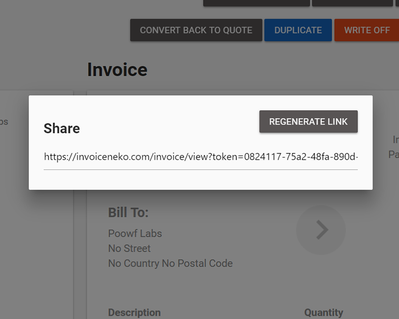 Share the invoice with a unique link